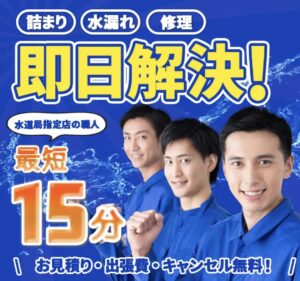 水道局指定店の職人が駆け付けるため、技術力も安心です。